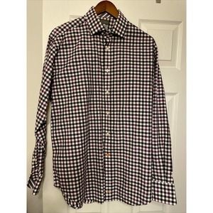 Mens Thomas Dean Long Sleeve Purple Check Button Front Shirt Size L Flip Cuff.