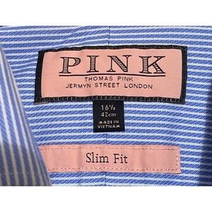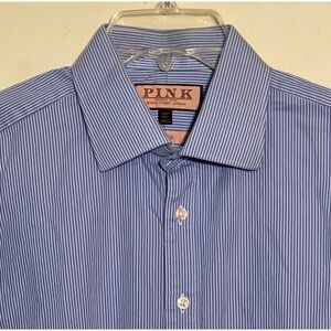 Mens Thomas Pink Long Sleeve Striped Shirt Slim Fit Size 16.5