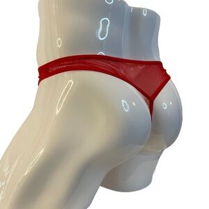 Mens Thong G-String Underwear Mesh Sheer See Through Red Medium NWT