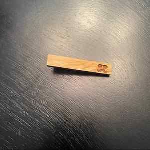 Wooden tie clip. Mustache and sunglasses silhouette imprinted in wood. Approx: 2.5”. Handmade