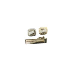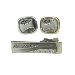 Mens Tie Clip and Pair Cufflinks Set Vintage 1960s Silvertone Gray Stone