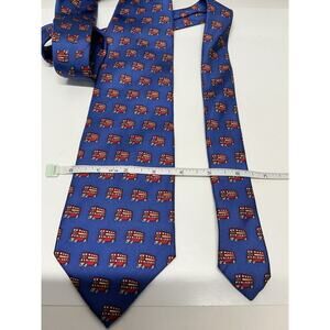 Men's Tie Novelty Beaufort 100% Silk Italy Blue w/ Red Double Decker Bus