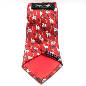 Men's Tie Sanglier Paris 100% Silk Red Rabbit Carrot Pattern Made In France 59"L