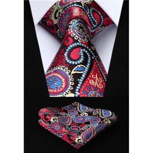 Necktie Size : Tie Width: 3.4 inches; Tie Length: 59 inches; Handkerchief size: 10 inches x 10 inches; Crafts: jacquard woven tie; Package include 5* necktie & 5* matching handkerchief.