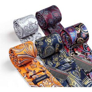 5 Pcs Tie Sets : Five different styles of tie and pocket square set. Made from woven microfibre that is soft, rich in color, and beautiful to feel. The stitching and thread are gorgeous. Good quality interlining makes our ties heavy weighted and elastic, which are easily designed for a perfect knot. High quality control makes our tie can be used for a long time.