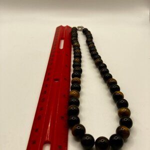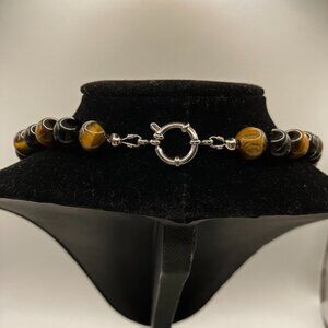 Men's Tiger Eye and Obsidian Genuine Gemstones 18.5 inch Choker Handmade NEW