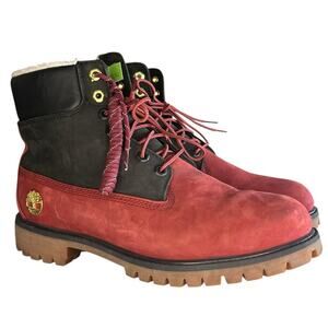 Mens Timberland A2MJM Premium 6" Leather Fleece Lined Combat Boot Size 10.5M Red.