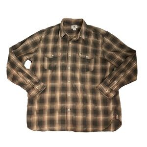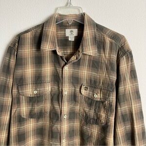Men’s Timberland Brown Plaid Vintage Button Down Long Sleeve Size XXL! In excellent conditions.
