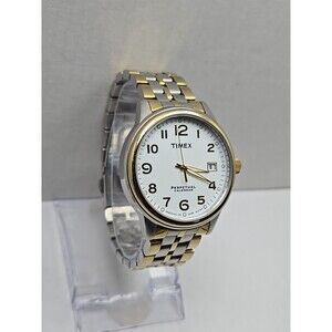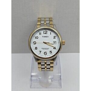 Mens Timex Perpetual Calendar Indiglo Two Tone Dress Quartz Date 50M New Battery