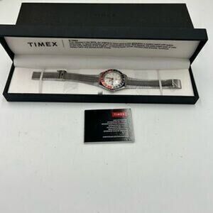 For sale is a brand new Timex Q reissue stainless steel quartz watch with a 38mm case. This watch is in pristine, never-worn condition and comes with the original box and user manual.