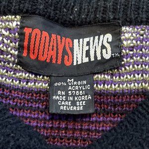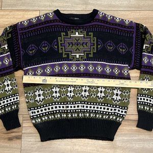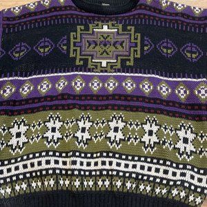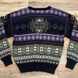 Men’s Todays News Sweater SZ Medium Vintage Purple Black Green Knit