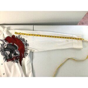 Mens Toku White Long Sleeve Button-Up Shirt With Red & Black Graphic Design Size