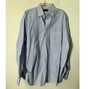 Men's Tom James Blue and White Pin Stripe Button Down Long Sleeve Shirt Sz 18-36/37. Like New Dress Shirt