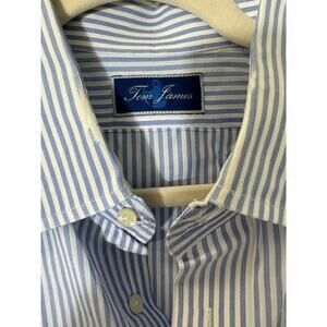 Men's Tom James Blue and White Button Down Long Sleeve Shirt Sz 18-36/37