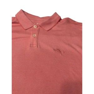 Men's Tommy Bahama Solid Coral Pink Short Sleeve Logo Polo Shirt Size Large