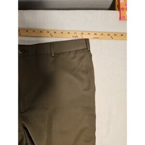 Mens Tommy Hilfiger 40x30 Pants Pleated Olive/Brown Khaki 100% Polyester Cuffed