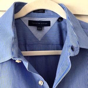 Men's Tommy Hilfiger Blue and White Stripe Button Down Shirt