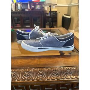 Lace up canvas deck shoes in light and dark blue. Great condition