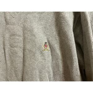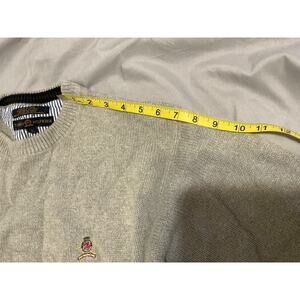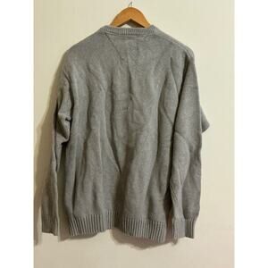 Men’s Tommy Hilfiger Sweater Large Gray Knit Pullover Round Neck Logo Front