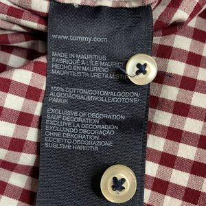 Mens Tommy Hilfiger XL Red Check Oxford Button Up Shirt Classic Fit EUC 3794