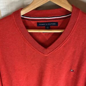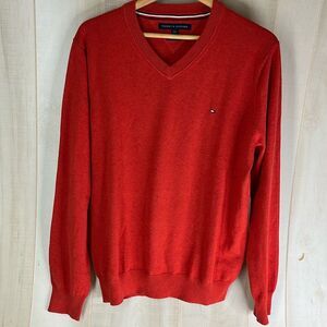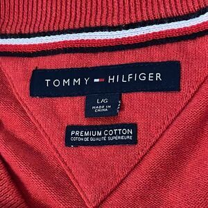 Nice Tommy Hilfiger red sweater in men’s size large. 100% cotton. Chest measurement of 23 1/2 inches across