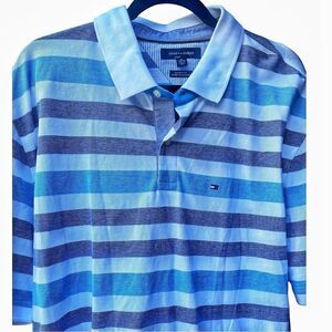 Men’s Tommy Hilfiger Blue Striped Polo Shirt. Size Extra Large. Perfect for casual outings. This shirt is new with tags.