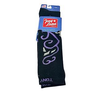 Men's Tony Lama Boot Socks 1,Pair Size Medium Black w/Purple-Gray Design