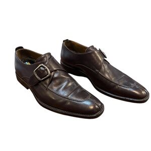 Elegant split toe dress shoe with a regal buckle and strap. Italian leather upper and lining with carbon fiber insole. Very comfortable, broken in just right and in very good condition. Made in Italy.