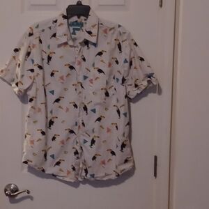 Add a playful touch to your wardrobe with this toucan print shirt. Featuring a vibrant mix of colors, it's perfect for casual outings. Stand out with its unique design and comfortable fit.