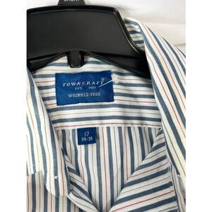 Men's Towncraft vintage Button Down Shirt Size 17 34/35 White Blue