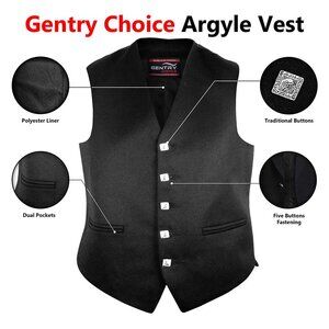 Step into the world of Scottish tradition with this Argyle Jacket and Vest in classic black. It’s tailored for comfort while keeping the traditional look intact. The detailed argyle pattern adds a touch of heritage that stands out at any event. Whether you’re attending a wedding, formal gathering, or want a sharp look for a professional setting, this set delivers confidence and style. Crafted with care, the jacket and vest make a strong choice for special occasions and traditional wear.