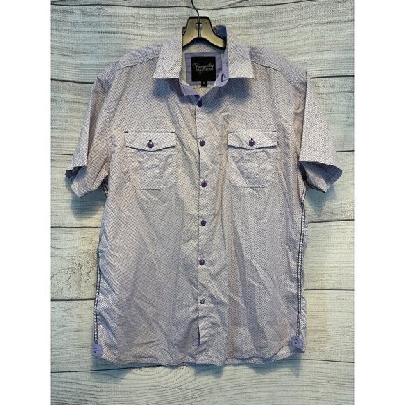 This Men's Tranquility Mayhem Purple Button Down exhibits a smart balance of style and comfort. The vibrant purple hue adds a pop of color to your wardrobe, perfect for a confident, trendy look.