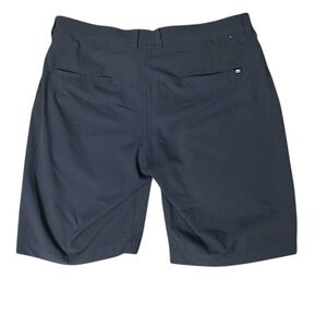 Classic dark blue shorts with a sleek flat front. Ideal for everyday wear. Perfect for golf and any outdoor activity. Zipper and button closure. Pockets.