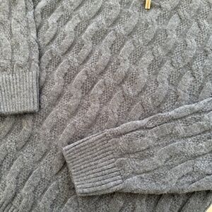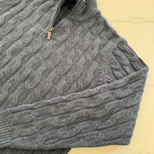 This is NWT Men's Cable Knit Quarter Zip in a beautoful shade of blue-gray. Brand is Trikko. Mens Size Large Made in Turkey