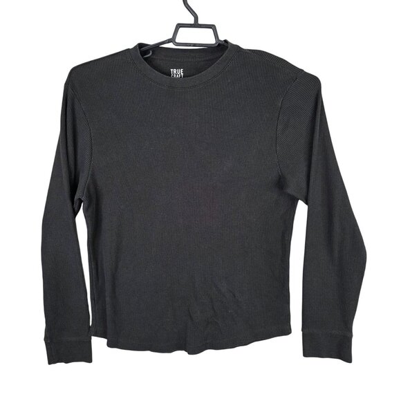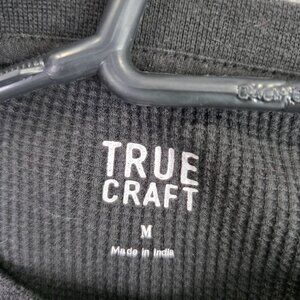 Mens True Craft Black Waffle Knit Thermal T Shirt Long Sleeve Cotton Blend M