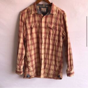 Longsleeve Collared Shirt Red and Yellow Plaid Size Small Last button on shirt is missing but can easily be replaced