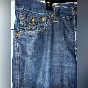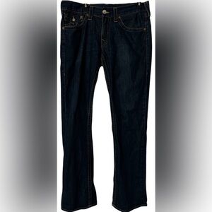 Elevate your denim game with these stylish True Religion Ricky relaxed straight jeans. Featuring a trendy 5-pocket design and accents like a zip and button closure, these jeans are both fashionable and functional. The medium wash and solid pattern make them versatile for any season, while the easy care and machine washable garment care make them a practical choice for everyday wear. Crafted from a comfortable blend of elastine and cotton, these jeans offer both style and comfort. The horseshoe logo stitching adds a touch of sophistication to these jeans, making them a must-have for any fashion-forward man.