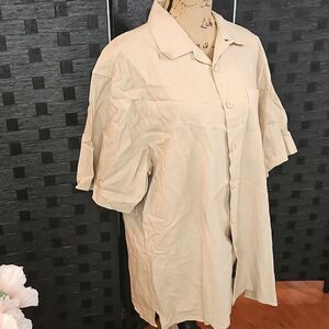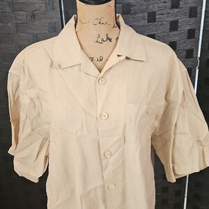 Men's Trust Tan 55% linen/46% rayon fabric blend short sleeve shirt, size Medium. Excellent to new condition, measurements in pics, smoke free home, ships next day. Over 2,500 Poshmark Sales. Bundle and Save!
