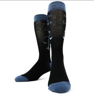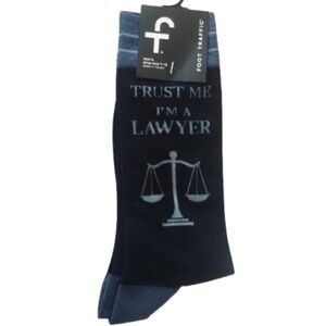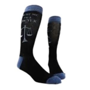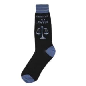 Foot Traffic Black Calf Socks with Blue “Trust Me I’m A Lawyer” , balance, heel and toe caps