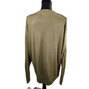 This men's sweater, size 2XL, features a stylish and classic design. It is primarily tan with intricate knitted patterns, including diamond shapes and vertical lines down the center. The sweater has a crew neck and long sleeves, with additional decorative stitching along the shoulders and sides, resembling a series of "X" shapes. The material is medium-weight, suitable for cooler weather, and offers a comfortable, relaxed fit. The design and color make it versatile for both casual and semi-formal settings.
