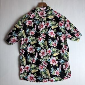 Mens Tunevuse Hawaiian Floral Print Short Sleeve Shirt Size XL Black Multi J1