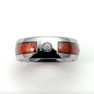 Mens Tungsten Mahogany Inlay 8mm Cubic Zirconia Wedding Band Ring