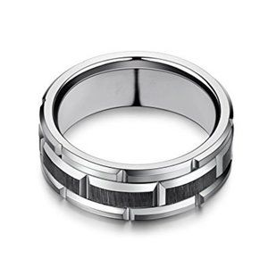 This beautiful tungsten carbide ring has silver tone brick pattern and is 8MM in width. It is beveled high polish and with a matte finish raised center. If you are looking for a ring that is scratch proof and forever keep its shine, then our Tungsten Carbide rings are for you. Tungsten Carbide is ranked second hardest next to diamond on the Mohs scale, diamond being a 10 followed by Tungsten Carbide as 9.