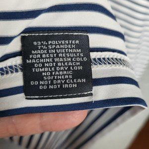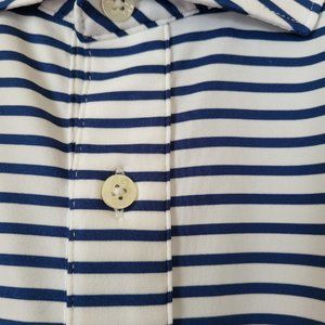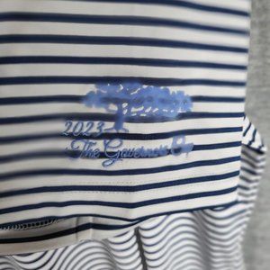 Step up your golf game with this classic, logoed polo shirt from Polo Golf in size 2XL. The collared, button-closure shirt features a striped pattern in white, accented with the iconic Turtleson logo. The shirt is made of an easy-care polyester blend fabric type and features The Governors Cup 2023 embroidery for a personalized touch. This short-sleeved polo shirt has a regular fit and is 32 inches long, with a chest size of 27 inches. It's perfect for a day on the golf course or a casual outing with friends. Machine wash cold and tumble dry for easy garment care.