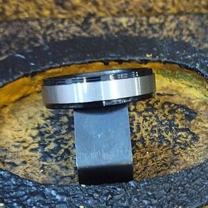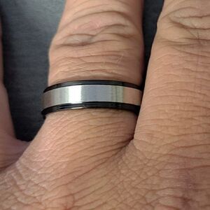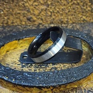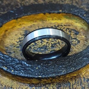 Men's Two Tone Silver and Black Wedding Band Step Edges Sizes 5 - 13 Available