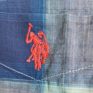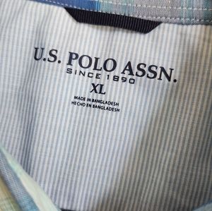 Men's U. S. Polo Assn. Short Sleeve Button-Down Blue Plaid Shirt, Size XL