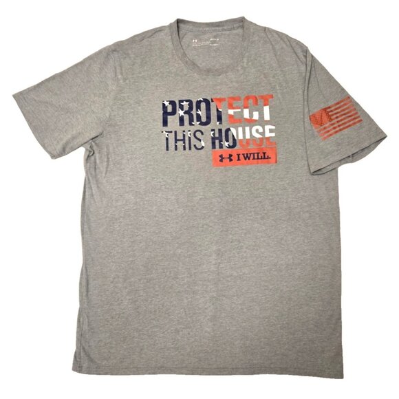 Men's UNDER ARMOUR "Protect This House - I Will" Gray Heat Gear T-shirt. Sz. L.