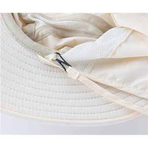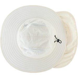 Mens UPF 50+ Sun Protection Cap Wide Brim Fishing Hat with Neck Flap White