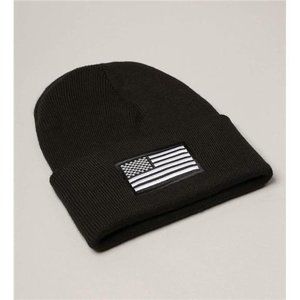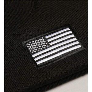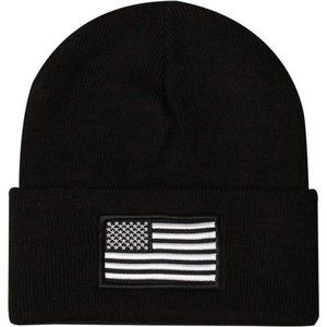Men’s US American Flag Embroidered Folded Cuff Skull Beanie Cap Comfortable