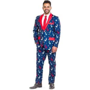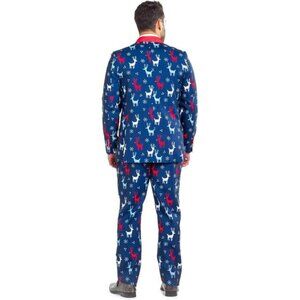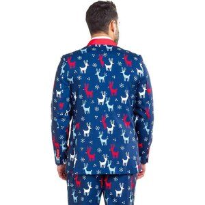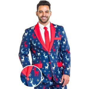 Men's Ugly Christmas Blue Sweater Inspired Holiday Suit Jacket Blazer Xmas Party